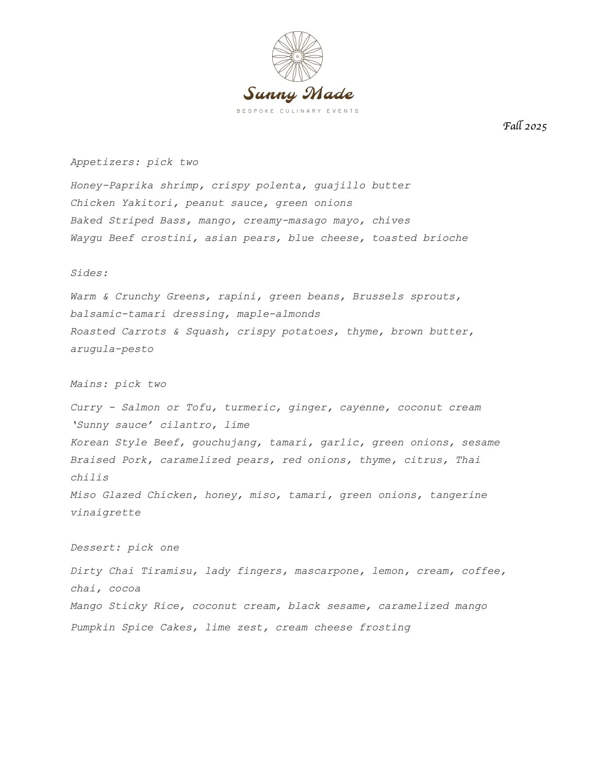 Fall Menu